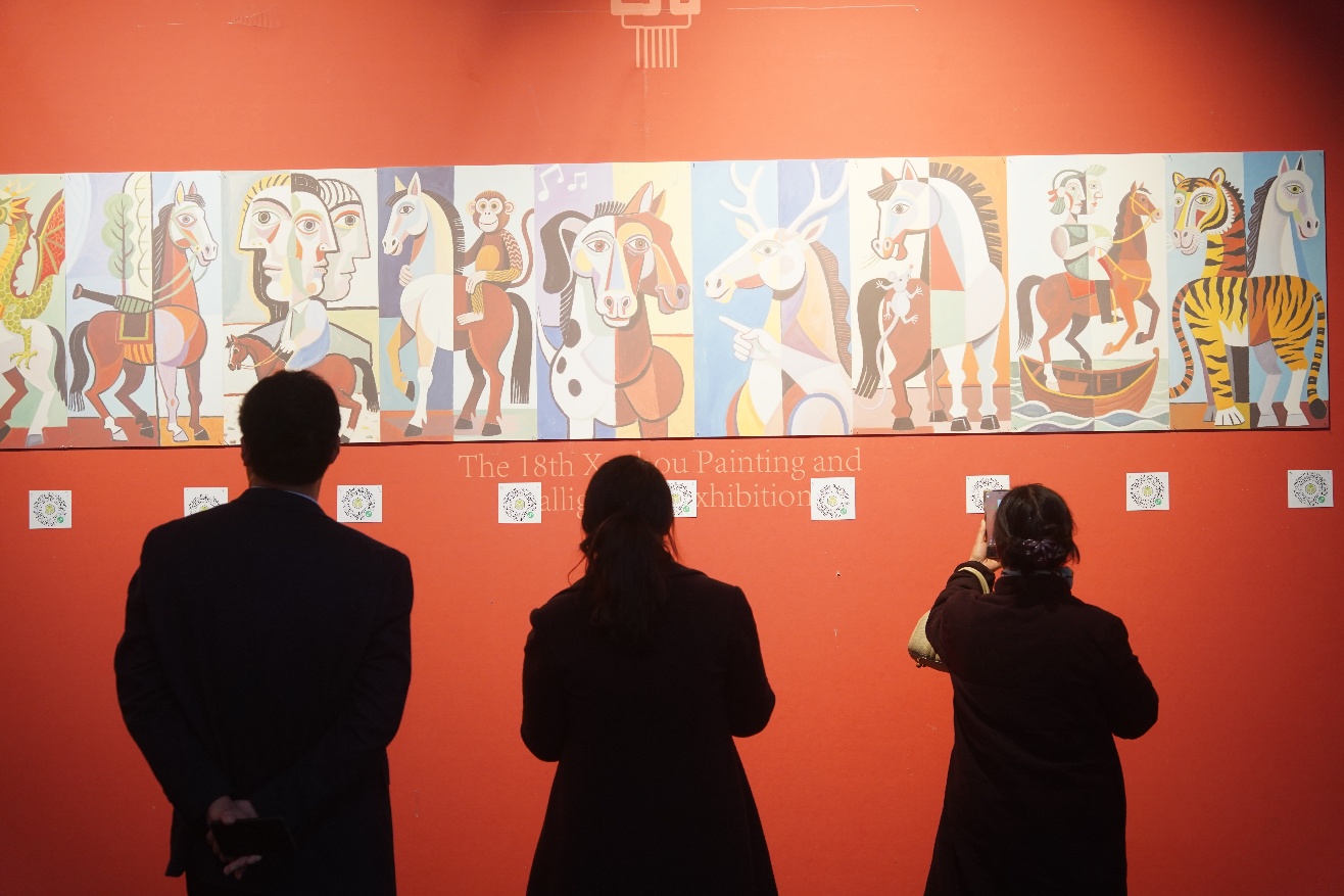 徐州市美术馆运营总监柳喜峰,江苏师范大学美术学院党委书记、研究生导师杨仲迎,徐州建筑职业技术学院艺术与设计学院副院长毕雪微以及我校相关部门、学院负责人,市文艺界代表、兄弟院校专家学者出席了开幕式。
