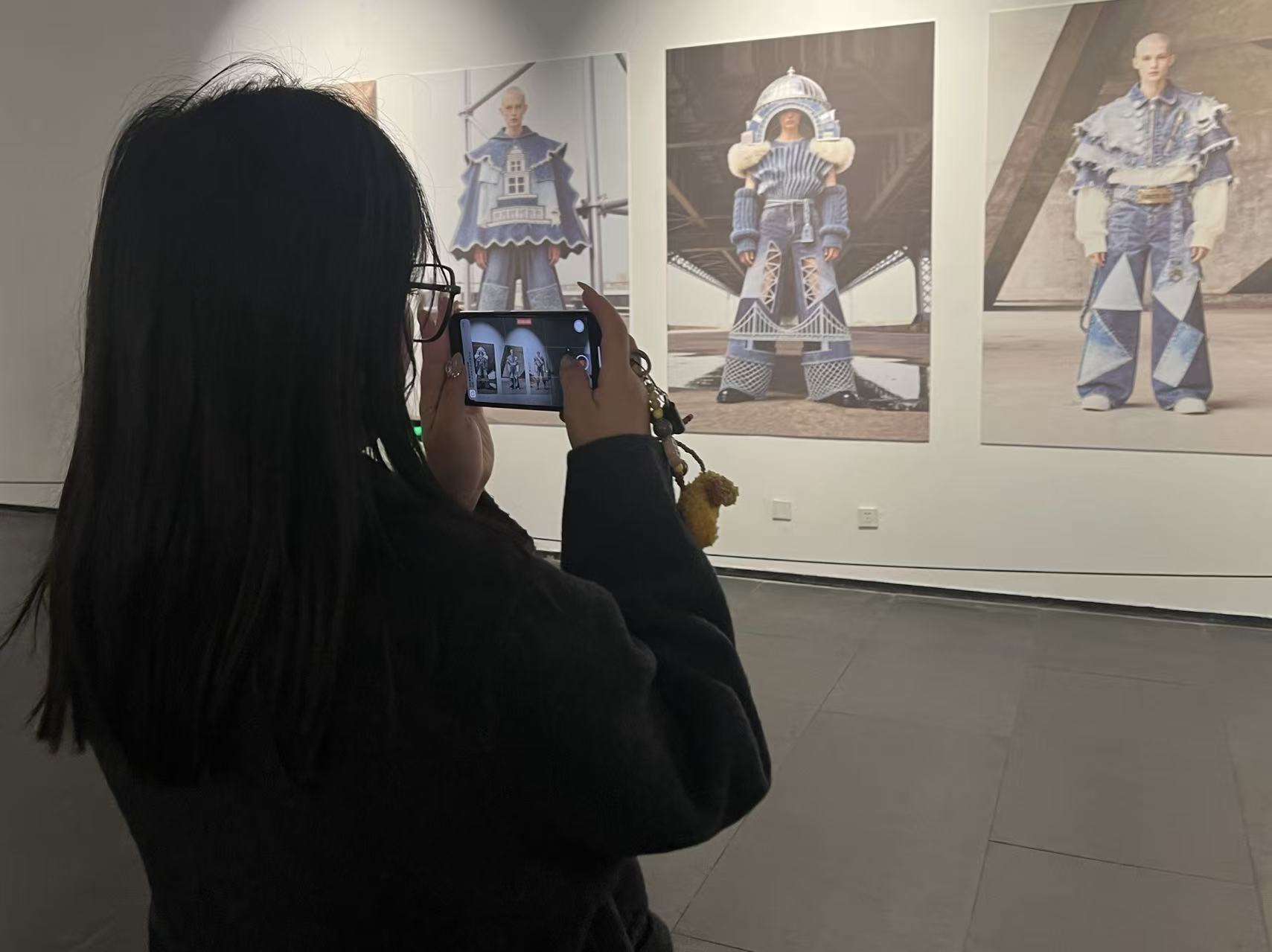 “墨线入云端”艺术设计作品展是吴雪蒙近五年来设计想法的综合体现,墨线是服装设计师与世界对话的最初密码,承载着手工创作的温度与灵思,而数字化的浪潮下,AI算法将墨线韵律转化为数据语言,在虚拟空间中推演千万种创意可能。本次展品中既可以看到传统二维设计的质朴初心,也可以感受到AIGC加持下,作者对服装设计、服饰文化先锋探索,更有二者交融后诞生的作品。每一件服装都是笔尖与像素的对话,是传统与未来的对话。