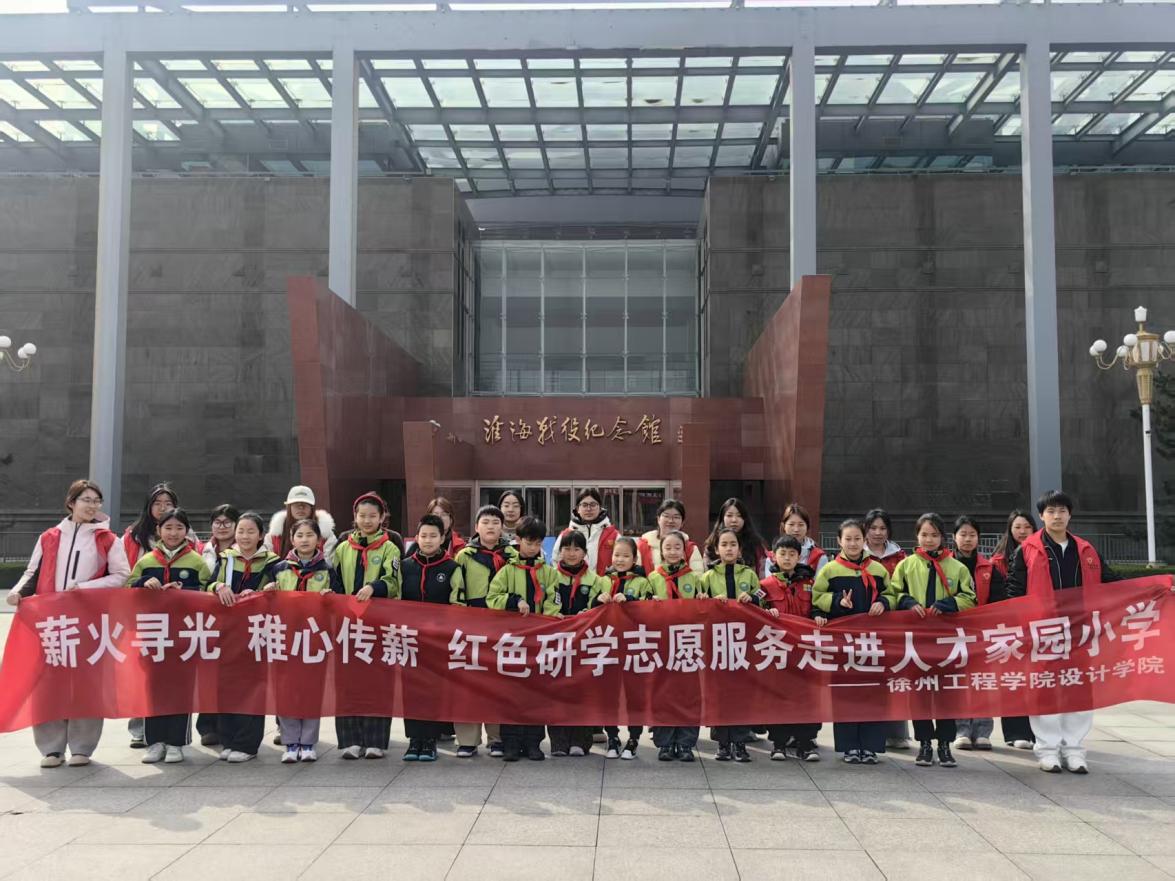 为深入传承淮海战役精神,厚植青少年爱国情怀,推动红色基因与青春实践深度融合,近日,徐州工程设计学院的青年志愿者团队走进青年路小学,开展以“薪火寻光 稚心传薪”为主题的红色研学志愿服务活动。志愿者们以“大手牵小手”的陪伴式引导,通过前置学习、创意创作、沉浸式纪念馆教学与仪式祭奠四大环节,带领小学生们走进红色历史,感悟初心力量,让革命精神在童心深处扎根生长。