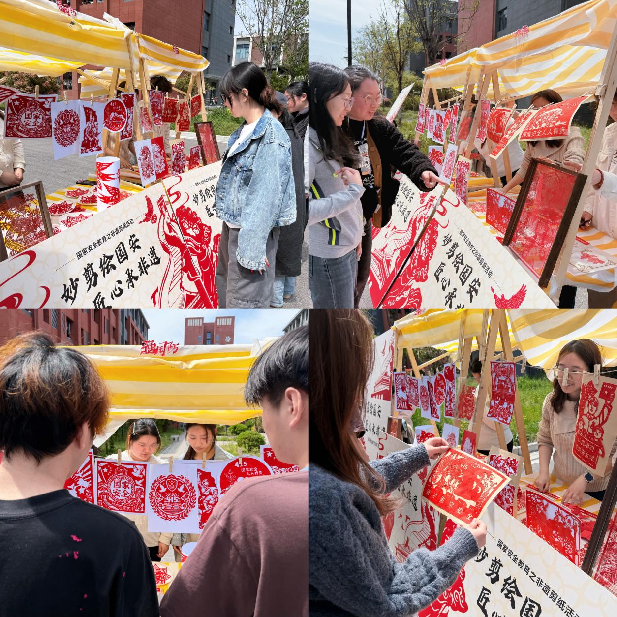 活动中,学生们将一张张普通的红纸逐渐蜕变为一幅幅主题鲜明、构思精巧的剪纸作品:有的以“国家安全”为核心,搭配祥云纹样,寓意山河无恙、国泰民安;还有的刻画长城、和平鸽等意象,传递出对国家繁荣稳定的美好祝愿。参与活动的学生表示,此次活动让自己跳出了书本知识的局限,在动手实践中既学会了剪纸技艺,更深刻领悟到国家安全的丰富内涵,明白了青年一代在传承非遗、守护国家安全中的责任与使命。